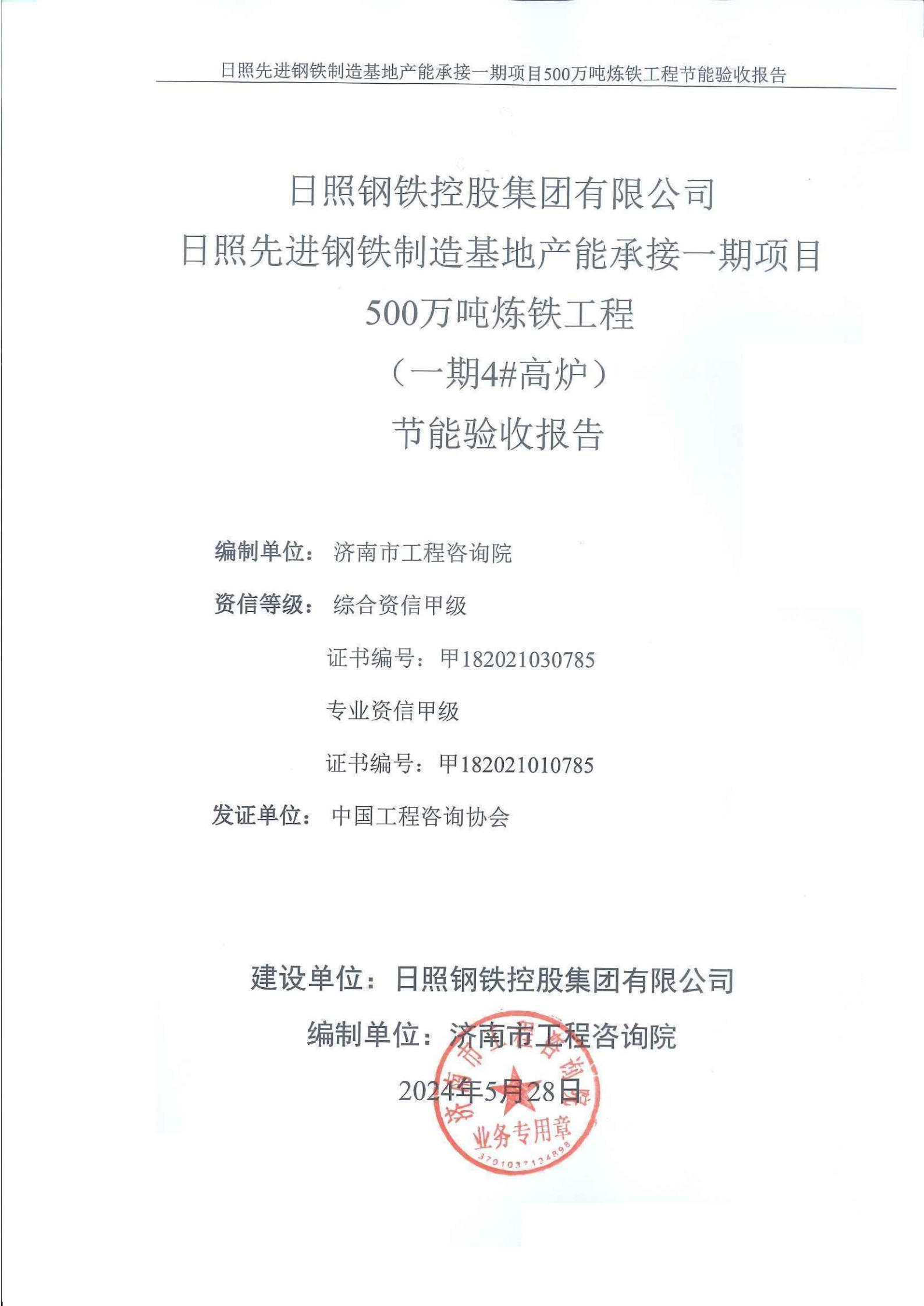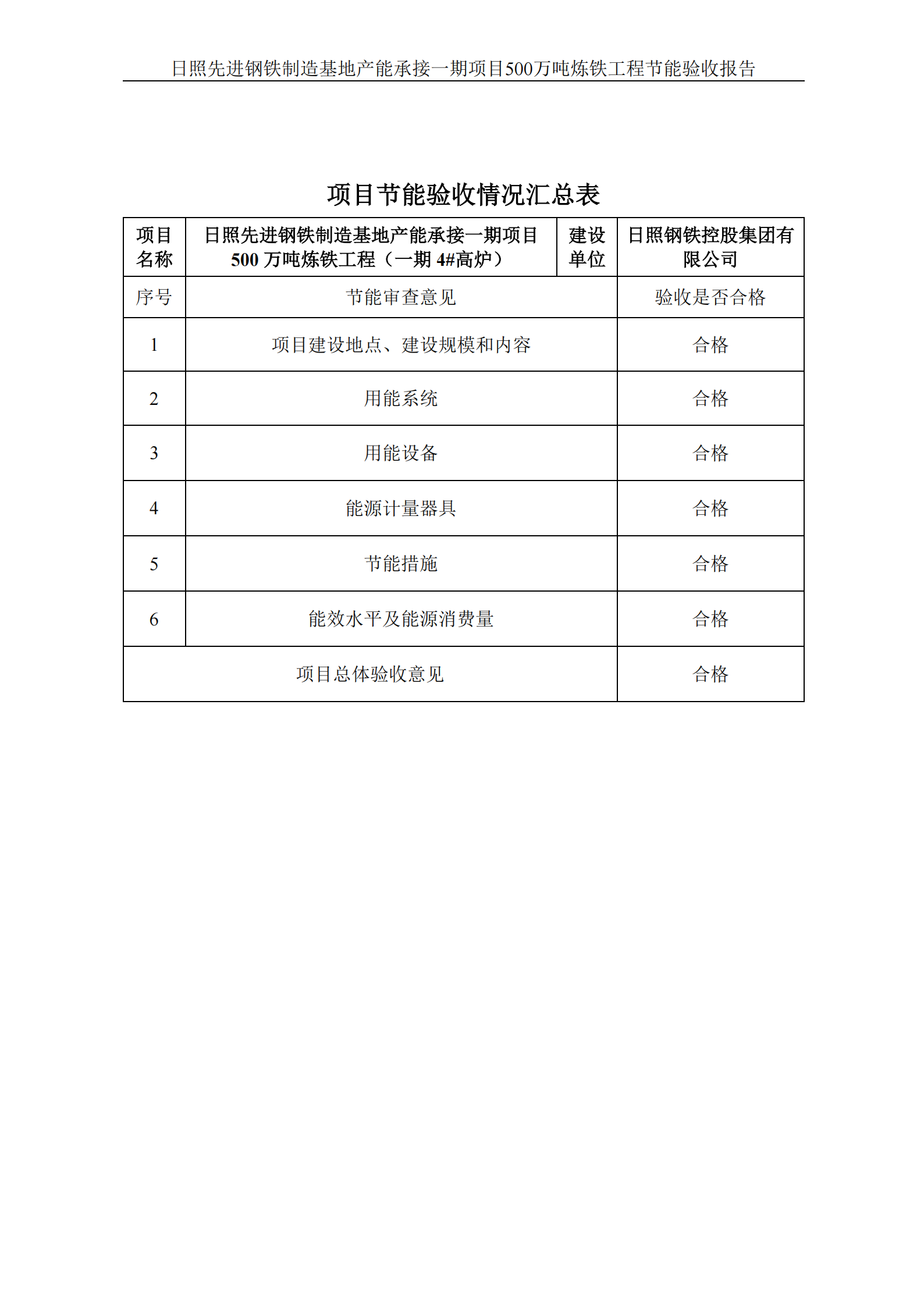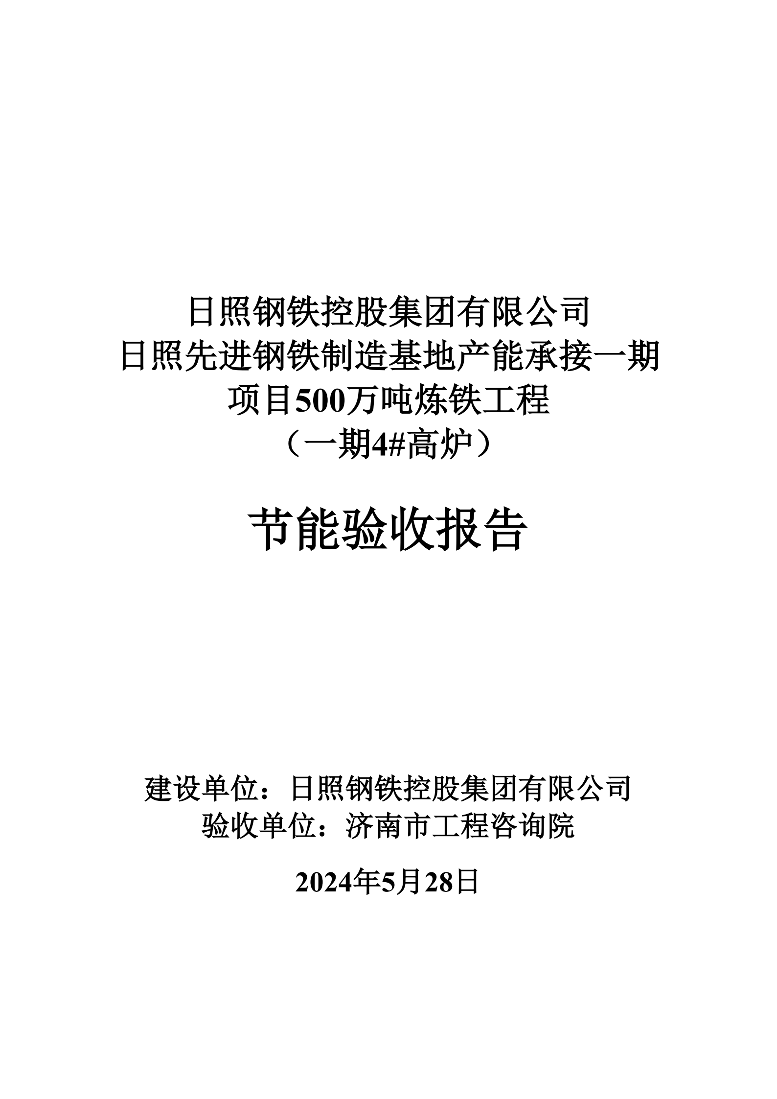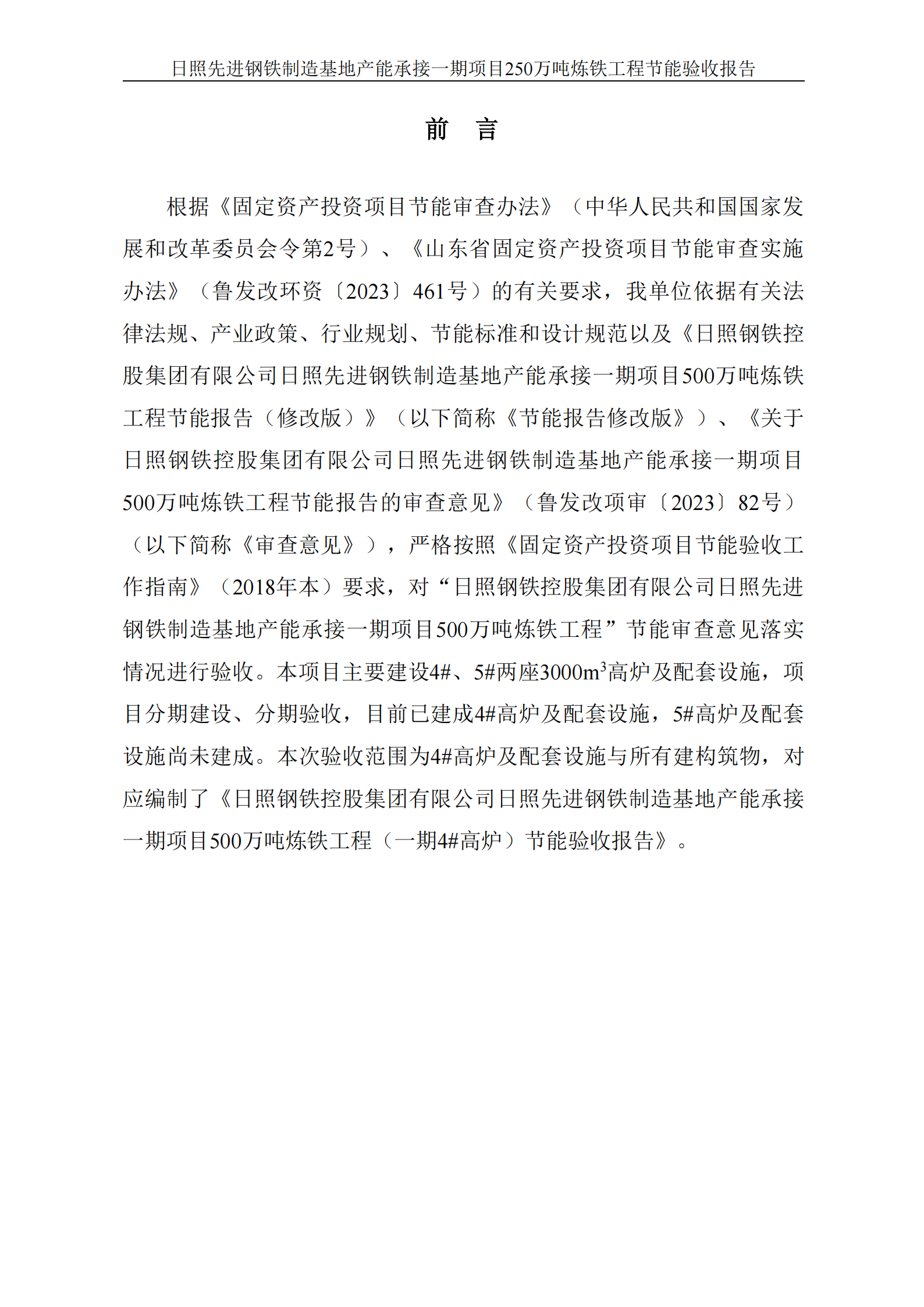 日照先進(jìn)鋼鐵制造基地產(chǎn)能承接一期項(xiàng)目500萬噸煉鐵工程節(jié)能驗(yàn)收報(bào)告(新4#高爐)公示